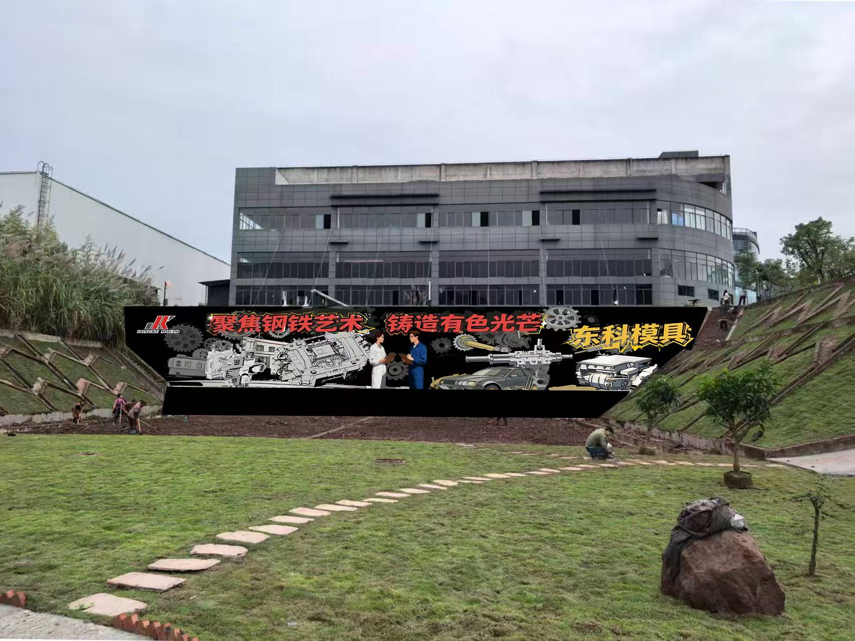 从水泥坡到工业艺术墙,东科模具的项目的墙